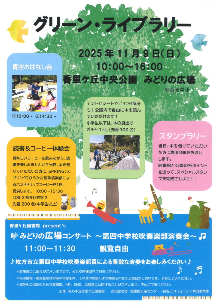 11月9日(日)10:00~16:00 グリーンライブラリーを開催します。